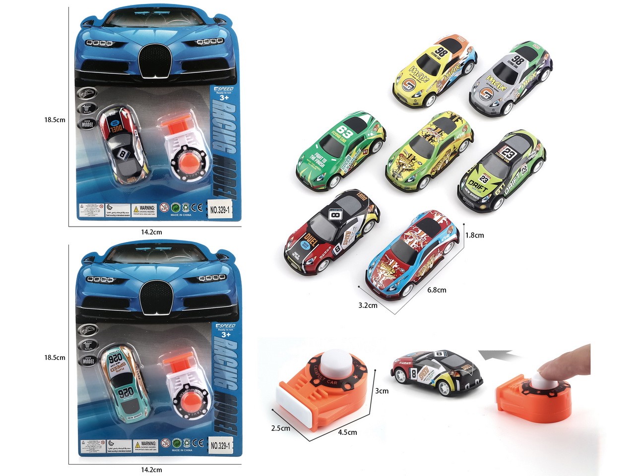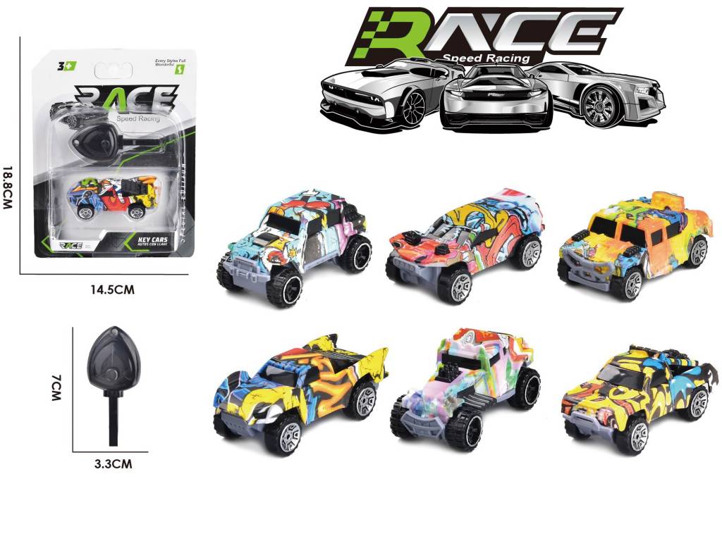 E15. PRESS AND LAUNCH KEY DOODLE PRINTED RACING CAR TOYS